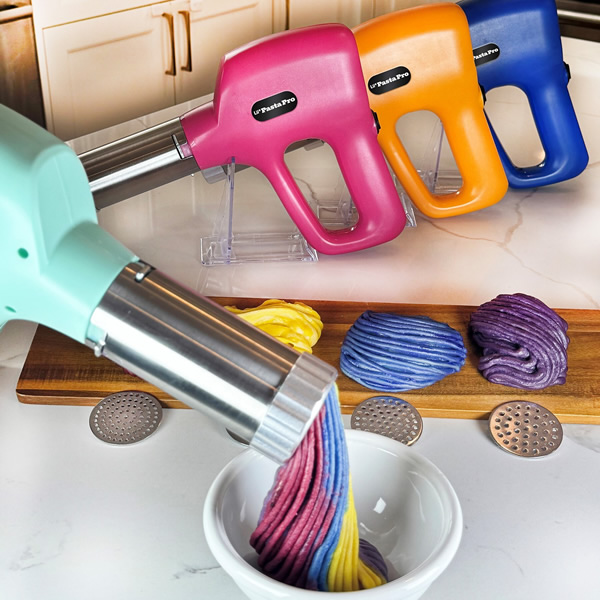 The Lil Pasta Pro comes with 5 different noodle discs, allowing children to explore a variety of shapes, colors, and flavors. Hide veggies in the noodles to boost nutrition or use natural ingredients to create vibrant, colorful meals that will excite even the pickiest eaters. Whether you’re making fresh noodles to enjoy immediately or preparing a batch to freeze for later, the process is quick and easy.